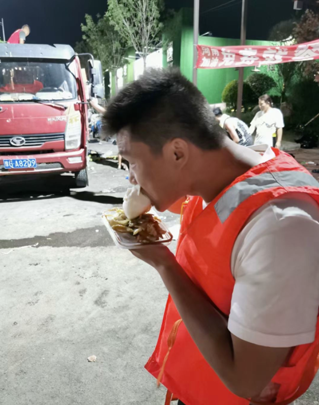一天的救援过后,除了疲惫就是饥饿,一个包子一点菜,简简单单的晚饭就是夜晚参与救援的全部能量。片刻的休息后,李惠民同志又继续开始夜间的救援行动,因为他明白,多耽误片刻受灾群众就会多一分危险。